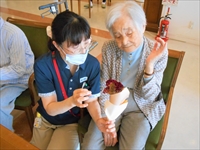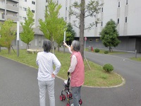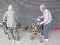 花も咲いていて小さな実が出来つつあります。どれくらい大きくなっていくのでしょう。入居者様と収穫するときが今から楽しみです。