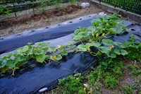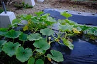ライフコート春秋の菜園ではジャンボカボチャが順調に育っています。