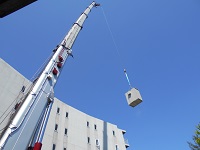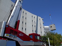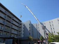 毎日ではありませんが、本日は大型クレーン車が出動しております。