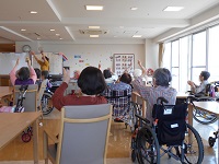 本日は、2階で音楽療法を行わせて頂きました。2階の入居者様に多数ご参加頂け