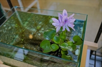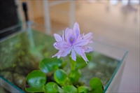 今朝、メダカ水槽のホテイアオイが花を咲かせました! きれいな薄い青の花です。いつまでも咲いていてほしいような可憐さです。