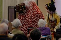 新聞紙や折り紙で作られた豆を鬼に向かって投げつけ、無病息災をお祈りされました。