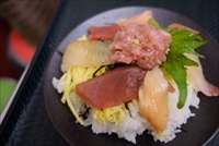 本日の昼食は海鮮散らし寿司でした。お刺身がとても美味しかったです。