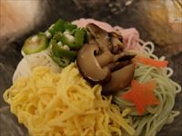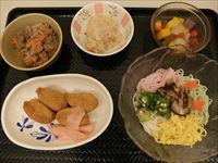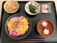 今日の昼食は食欲の落ちる今の季節にもピッタリな、さっぱり散らし寿司です。