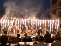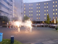施設前の広場でお菓子や飲み物を召上って頂きながら、目の前で繰り広げられる花火を楽しんで頂けました。