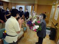 スタッフ全員からの花束をお渡しし、お別れの挨拶を聞き、