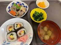 恵方巻き(さすがに1本丸ごとは厳しいのでカットしていますが)と菜の花の辛し和えもありました。