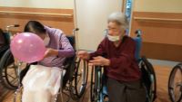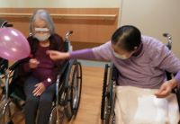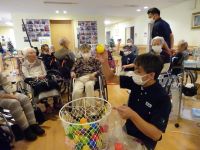 入居者様は思った以上に上手に風船を渡し、どんどん来る風船を割り切れず、早く割ったほうが勝利!!