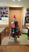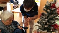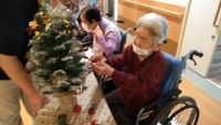 1階のエントランスに、入居者様が飾ったクリスマスツリーと勝敗のシールを用意しました!!