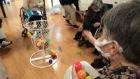 普段から投げる動作はしないので、最初はどう投げて良いか分からなかった入居者様でしたが、次第にコツをつかんだ様子。