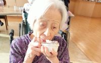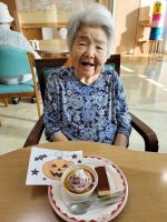 嚥下リハをしている方も、この日は普通のおやつに笑顔でピースサイン!