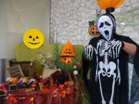 農園名人のIさんはピエロに。PTさんは骸骨に変身!