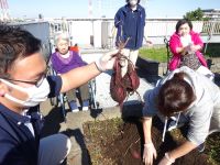 入居者様が見守る中、スタッフが順番に芋を掘っていきました。