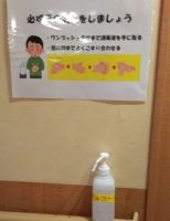 手指消毒のアルコールもたくさん置き、こまめに消毒を実施しています。