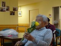 男性入居者様お一人ずつ、バラの花をお届けいたしました。
