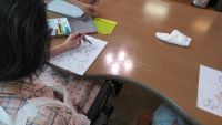 ご自分のペースで色塗りや絵を描いていくところをみて、いずれ価値のある1枚になるかもしれないと、ひそかに期待している今日この頃・・・。