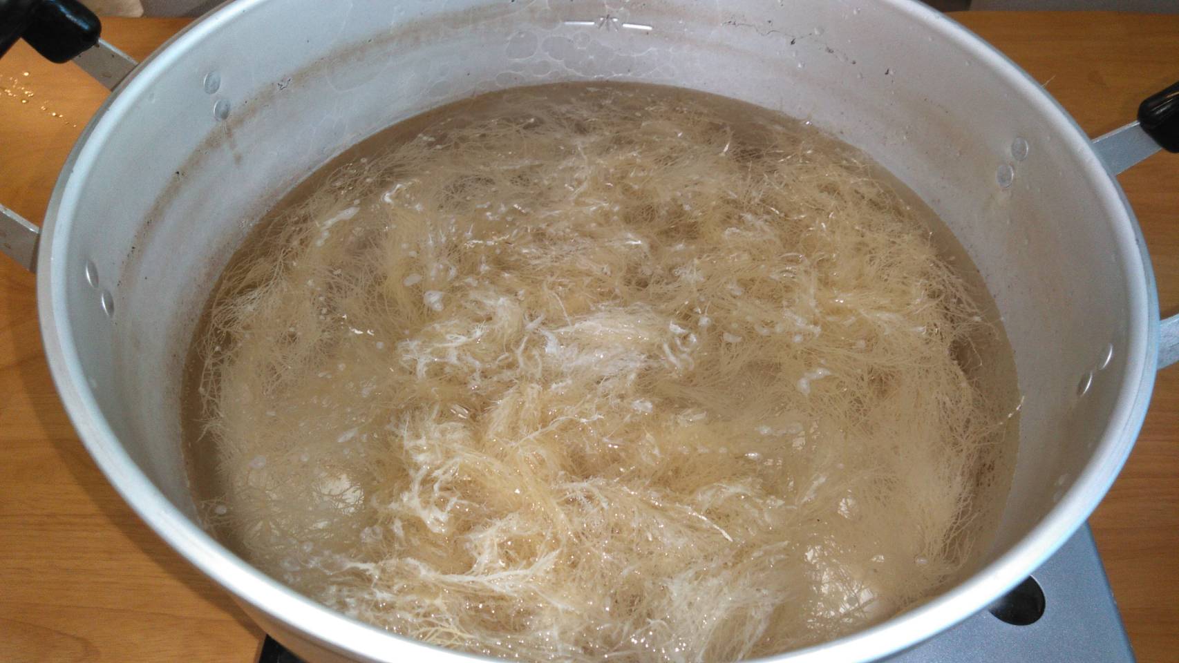 天草を洗い、水とちょっぴり酢を入れてグツグツ・・・。