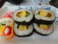そこで、薄焼き卵を海苔代わりに巻いています。