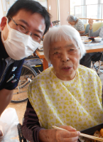 リハビリ中の笑顔は、頑張った証ですね。