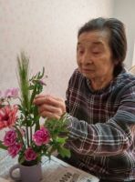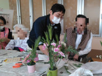 お花の先生(施設スタッフです)が少しだけお手伝いして完成!