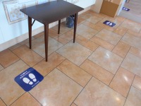 ソーシャルディスタンスを意識するよう、掲示物などを増やしています。