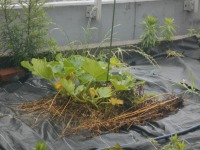 一方4階のベランダに植え替えたかぼちゃは、やや苦戦中か。