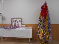 皆様のご協力により完成した、色わっかを用いたクリスマスツリー。