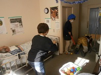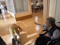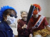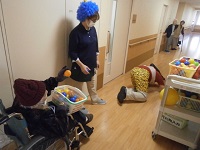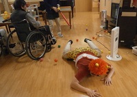 ホールで昼食を取っている経管栄養の方の輪の中へ入り、
