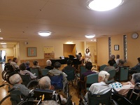 「春」がつく歌や、学生時代、瀬戸の花嫁など、皆様がご存知の曲を披露して下さり、入居者様も口ずさんでいました。