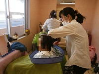 今年度初の訪問理容がありました。毎月ヘアマニキュアをされるご入居者様は大好きな雑誌を読まれカラーリングの待ち時間も楽しく話をされていました。