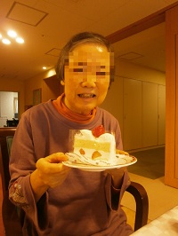ご入居者様とお誕生日の歌を歌いショートケーキにてお祝いをしました。