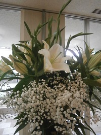 今週のお花は百合とグラジオラスのアレンジでした。今週のグラジオラスはオレンジ色でハロウィンの飾りにも良く合います。