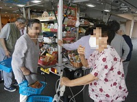フルーツ、お惣菜、お刺身、お菓子等沢山の種類の品物が並びます。