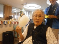 出来立ての綿あめは「懐かしいわ。」「子供の頃を思い出す。」と喜んで下さりご面会のご家族と共に楽しい一日となりました。