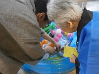 金魚すくい、ヨーヨーはプールの中に水をはりお好きな色をご自身で選んで頂きすくって頂きました。