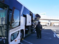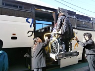 移動はリフト付きのバスなので、