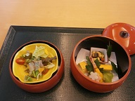 初めの到着は、京懐石の昼食です。