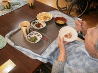 機能訓練士の見守りの中、召し上がる方もいらっしゃって・・・。