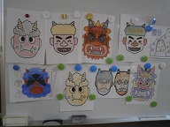 豆まき準備の、お面作りに精が出ます。
