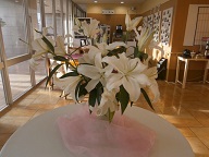 まずは豪華なフラワーアレンジメントでお出迎えです。