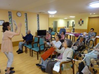 ピアノのある2階ラウンジは、入居者様・ご家族様で一杯。