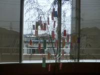 七夕に向けた飾りつけと、皆さまの願いを込めた短冊を飾り、七夕の日を迎えることが出来ました。皆さまの願いが叶うといいなぁと思いました。