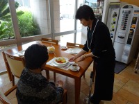 今回は、「フレンチトースト」です。甘いフレンチトーストに酸味を利かせた苺ジャムを添えて、皆さまに召し上がって頂きました。非常に好評を頂き、次回を楽しみにされている入居者様もいらっしゃいました。