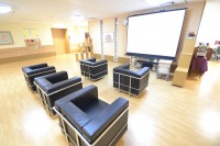 皆さまのご希望も募集してます。観たい映画がありましたら、1階事務までお申し付け下さい。100インチのスクリーンで、迫力ある映画を提供致します。