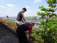 先週日曜日、近隣の花屋・力自慢のスタッフ2名で屋上の花壇を増設しました。