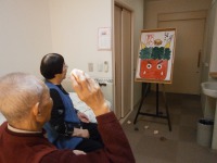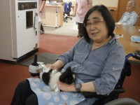 フロアーに来られない入居者様には、1部屋ごとに伺って触れ合っていただきました。