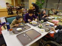 入居者様が月・読書・映画を楽しんで頂いてるところ、厨房では夜食に召し上がって頂くラーメンのスープを作製中。