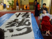 フロアーをいっぱいに使い、大文字を書いて頂きました。