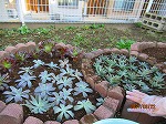 花壇のキティちゃんリボンの中に多肉植物を植えてもらいました。