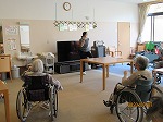 間隔をあけて体操です。なかなか外に出られないので毎日10時15時の体操は